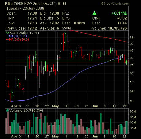 It’s still a churning battle with the bulls and bears but for now, but at least short term, the baton may have been passed to the bears. The financials look heavy here, and I still think they are cripples going forward, when you mute the hype and the false promises they are still broken.