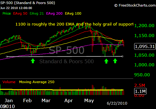 Ireland is still having problems, UK’s deficit is off the hook and Spain just raised max capital the other day. EWP (Spain) is getting up to the 200 day moving average and is getting to a level that I love to short. From my perch, Europe will still have some more negative surprises.