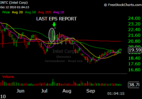 What is more telling to me is what the ripple effect was. Although $INTC was a super nova and dissipated quickly, it probably had a lot to do with the beginning of a nice rally in technology in general. Below is a chart of the the $XLK. Intel reports today after the close at 4:15 and the whisper number is .51 cents. Good luck.