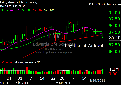 I took EW off the list recently but am re-adding it as they have been invited into the S&P 500 and the chart still looks good.