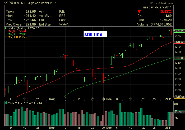 The $SPX is “betwixt and between”, as it now sits in between its 20 and 50 day moving averages, as well as the middle of some Fib levels. It should get interesting going forward and certainly not as easy to make money. A test lower lowers is certainly a possibility. We’ll see if dips keep getting bought.