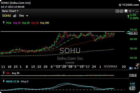 SOHU could break out around the 68.30 area. Chart looks good. Check the P&L for exact entry and stop