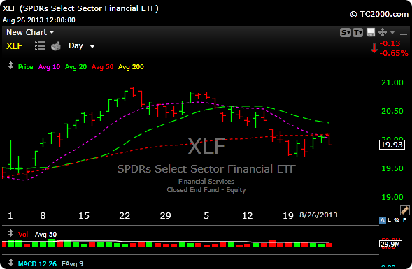 The financials look lousy( XLF) and the etf got stopped dead on ts tracks today at its 10 day moving average.