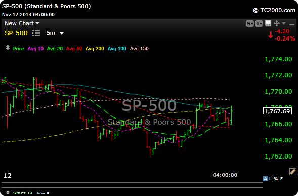 The market gapped down at the open, then bounced back to close the gap before heading lower again. In the afternoon the SPX hit its low for the day at 1762, then recovered heading into the close. Two weeks ago today the market hit SPX 1775 at the open. Since then the market has failed on three attempts to break through that level, and the 1779 range. Consolidation, or forming a top? Since June the SPX has risen from 1560 to 1775 with nothing more than a 4.9% correction during that period.