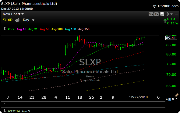 SLXP has a nice pattern and is working off its acquisition of SNTS, another quality drug company. I will look to get long the 90.85 level.