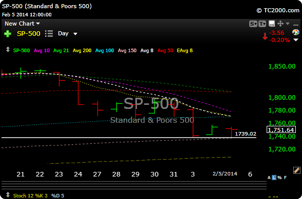 The market gapped down, then took out Mondays low at around 10:25 am. , but then managed to rally about 17 handles. Monday’s closing low (1739) is still the area I think we need to watch for support.
