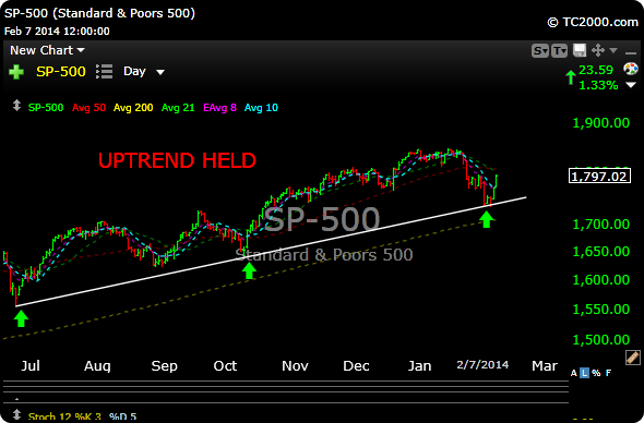 I’m not sure if the bottom is in for this market yet, maybe the 1700 level still has to be tested, I don’t know. Yellen gets the microphone Tuesday and Wednesday in her Fed debut, and she is in a tough spot because we found out Friday that no one has a job. So pathetic. This is year five of the uncovery. Tapering the taper could be very bad for market perception too.