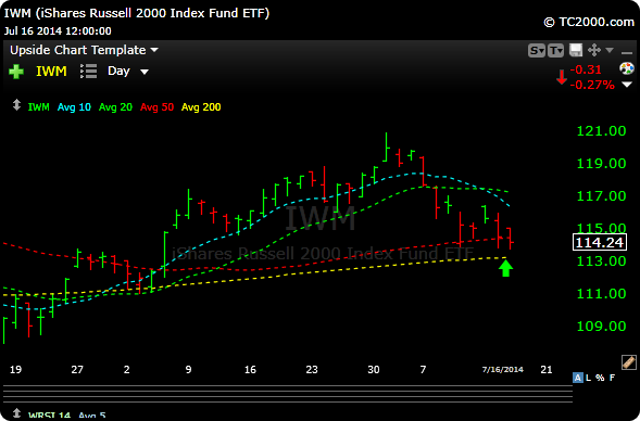 {+++} The indexes did well today as the DOW 30 made more highs and the SPX is very close again to more highs. The Nasdaq also tagged fresh new highs before backing off. The problem child, once again, was the Russell 2000 as it traded down about a quarter of a percent. Notice that the Russell is managing to hold the 200 day moving average so far. It did break its 50 day moving average today.