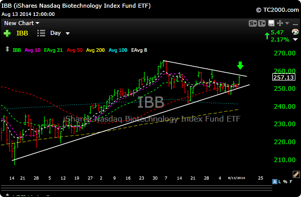 Biotech continues to act great (IBB) and the etf is right at an important downtrend line so watch for a breakout