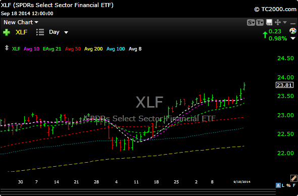 The real stand out today were the financials (XLF). We knew as soon as rates started to rise that the financials would do well. This looks like a real solid breakout so they should go higher over time now. We’ll wait for a pullback and take a look at some of those names.