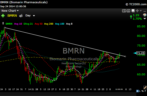 $BMRN is at a major downtrend and looks like it has interest in breaking out.