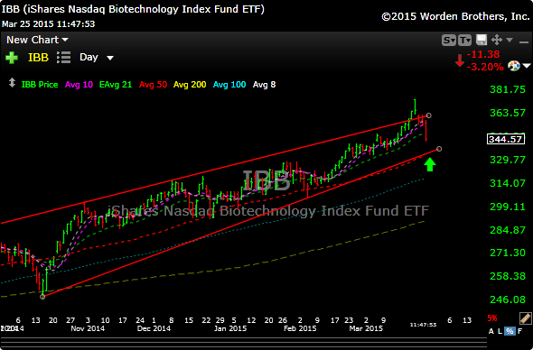 This pull back was overdue. Right now I’m looking to see if the 21 day moving average holds by days end for IBB. Corrections beget opportunity.