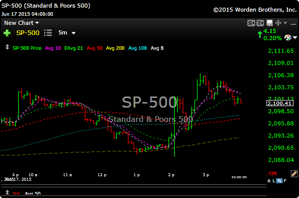 Stocks ended slightly higher Wednesday after the Federal Reserve signaled that interest rates could increase more slowly than officials had expected. The market was all over the place today, but when it was all said and done the SPX. closed about 3 handles higher than where it opened.