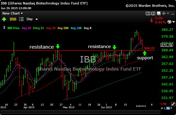 After slamming through the spike high a week and a half ago, the IBB has now pulled back to test the breakout. Bottom line, that resistance has now become support.