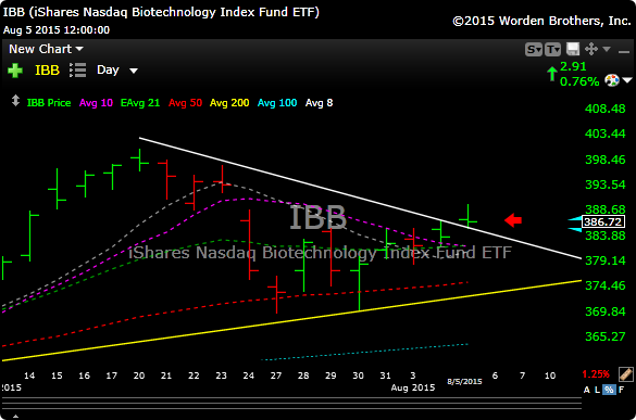 Biotech still has not made an authoritative move. Its right at key spot, but its finding trouble making a statement.