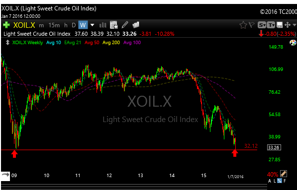 We’ve been talking about a retest of the 2009 lows in crude for a couple of weeks now. Today was special because not only did we retest the low we broke the low. Crude managed a slight bounce to close above it, but I’m not optimistic.