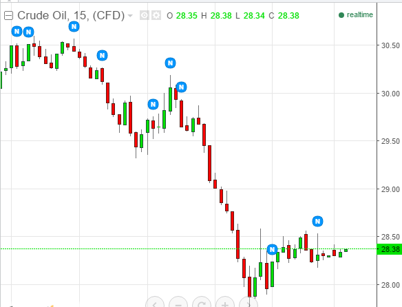 Crude got hammered today after the International Energy Agency (IEA) said the oil glut will get worse in 2016. As you can see below on the 15 minute chart it really got hit.