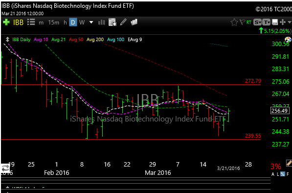 In last nights video I mentioned biotech and the possibility of a short term bottom in the sector. IBB had a decent, not great day, but it seems to be showing some tendencies of a possible bottom. We’ll see, still early. I added BIB today which is the 2X long etf.