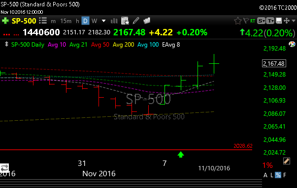 That red line in the chart above was tagged in the wee hours on election night. Roughly 2028 was the overnight low. We closed today at 2167. So we have rallied about 140 handles since futures went limit down and the world as we know it was coming to an end.